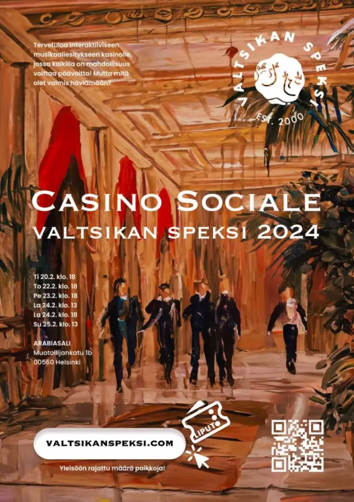 Kasinolla risteää myös monenmoisen onnenonkijan polut. Jokaisella on oma tarinansa, tavoitteensa ja toiveensa, sekä salaiset motiivinsa kasinolla asiointiin. Ja kaikilla on mahdollisuus voittaa – jos siis uskaltaa pelata ja ottaa myös häviämisen riskin 🫣. Mutta mitä itse kenelläkin onkaan panoksena? Millaisista voitoista on kyse? Onko peleissä sittenkään kyse pelkästä tuurista? 🍸🍀